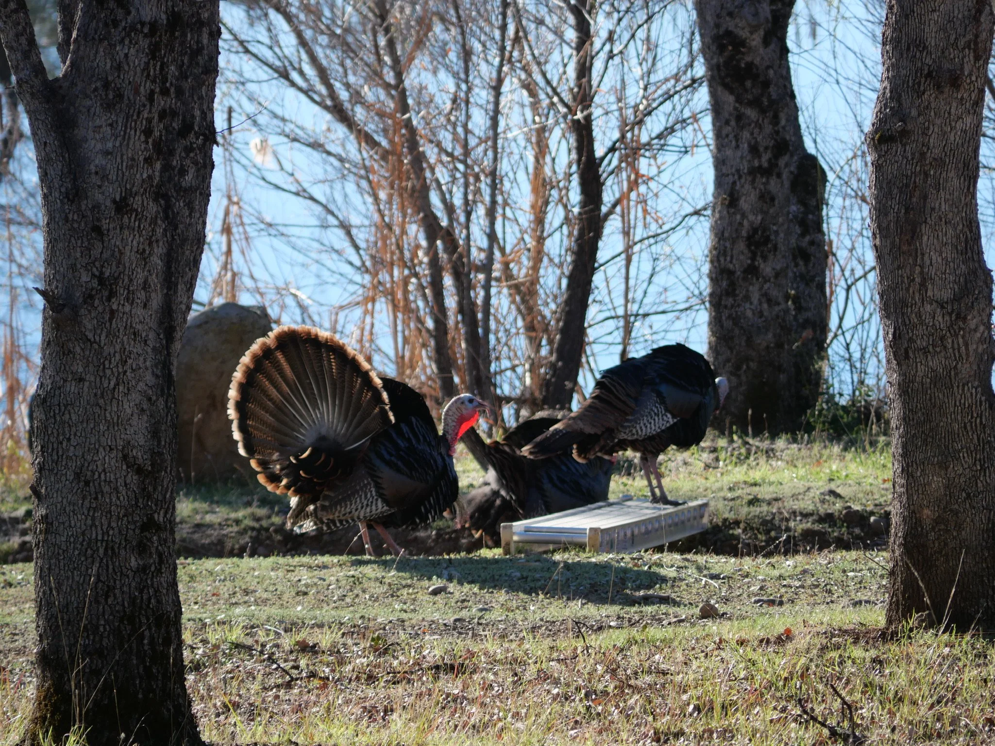I spotted them from the main house. Three toms down by the pond. I grabbed my camera, put Señor in his crate, snuck around their flank, and quietly made my way towards them. In retrospect, I could have arrived with a marching band and it wouldn’t have mattered.